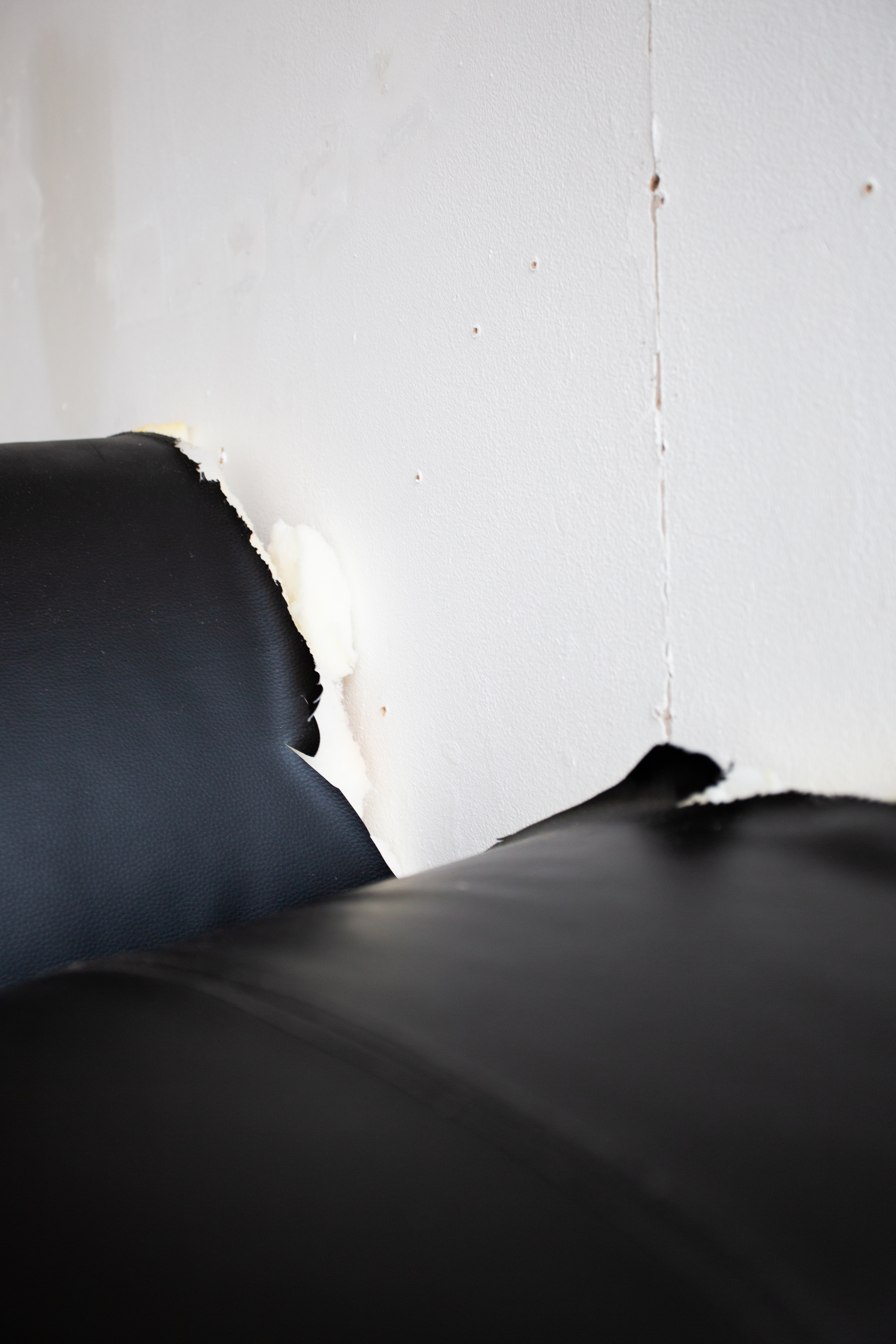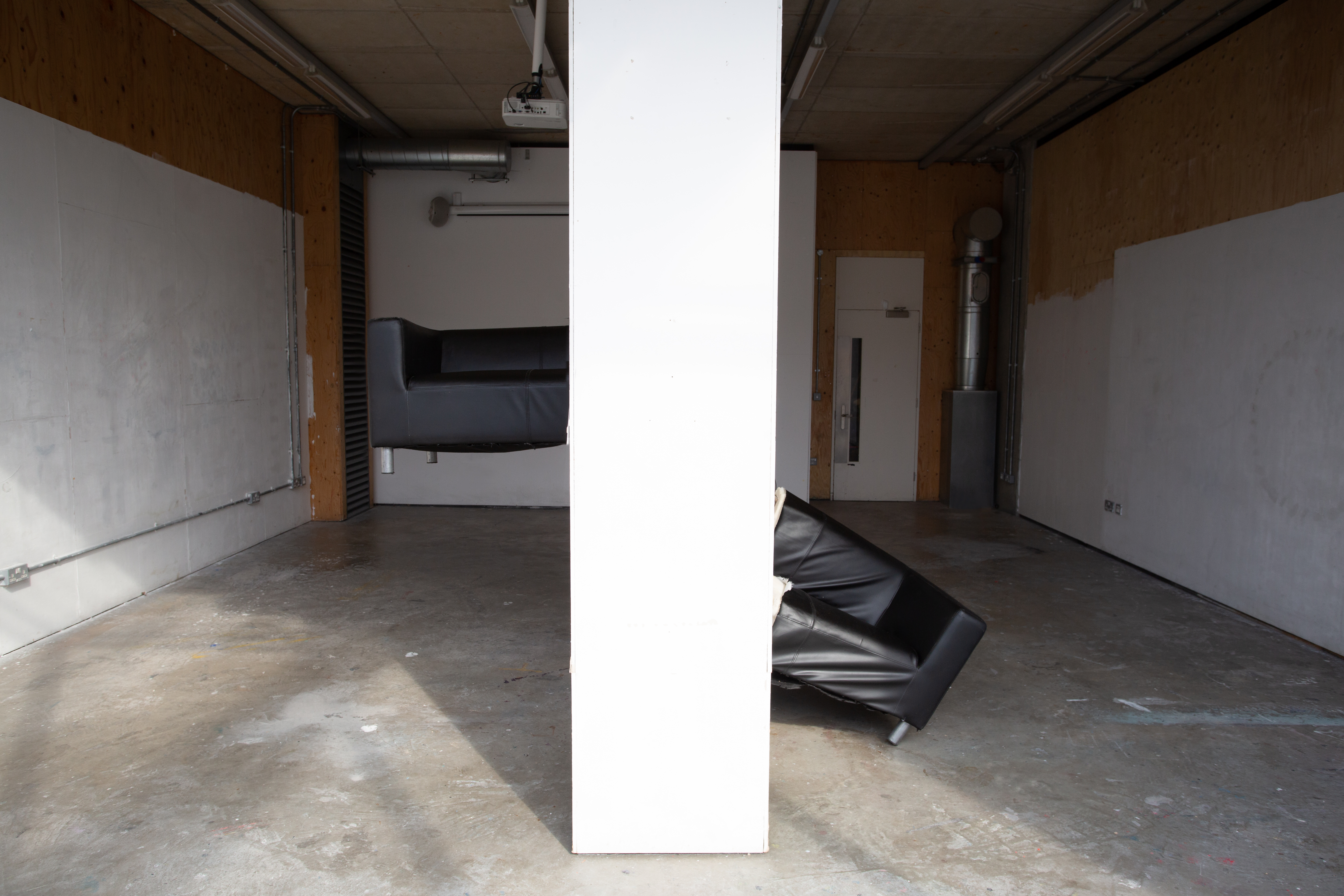 After sawing in half a two-seat sofa, often referred to as a love seat, I put one half on the wall and the other disconnected on the other side.